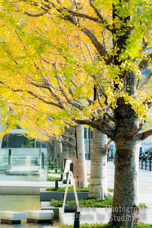 11月の上旬の梅田界隈でのイチョウ並木です。まだ、枯れ落ち葉ではない時期でした。