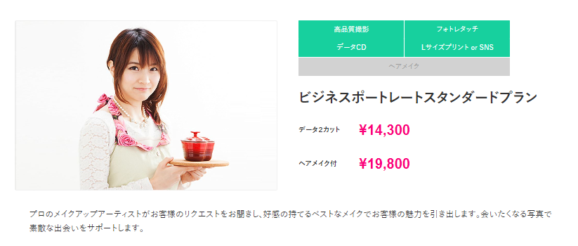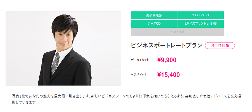 基本は、こちらのビジネスポートレートプランになります。