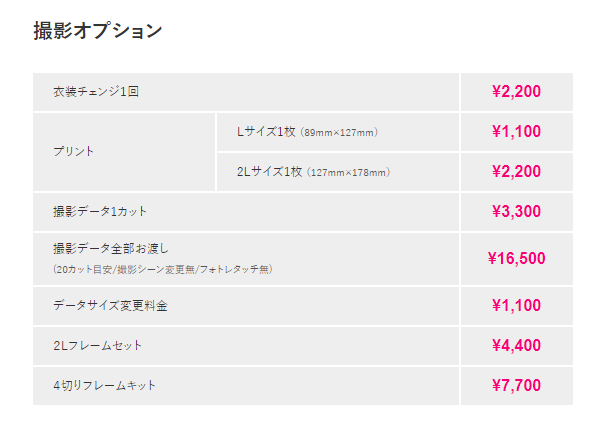 追加カットが必要な場合は、撮影オプションより追加が可能です。