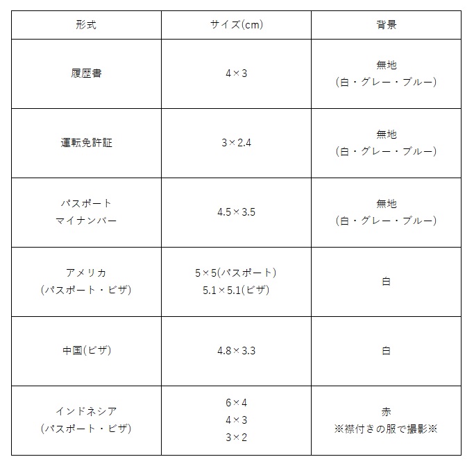 当店では、各種証明写真に対応した撮影が可能ですので、