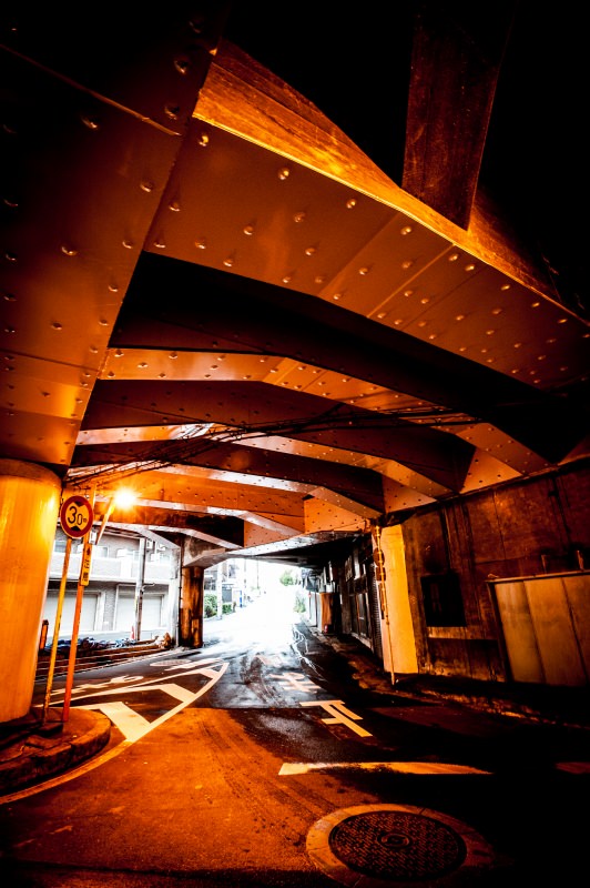 もともと道路高架下のさまざまな光源が混ざり合うミックス光での1ショットでしたが