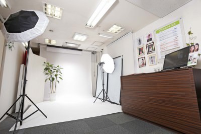 当店スタジオは本格的なライティング機材を完備してドレッサースペースも有ります。