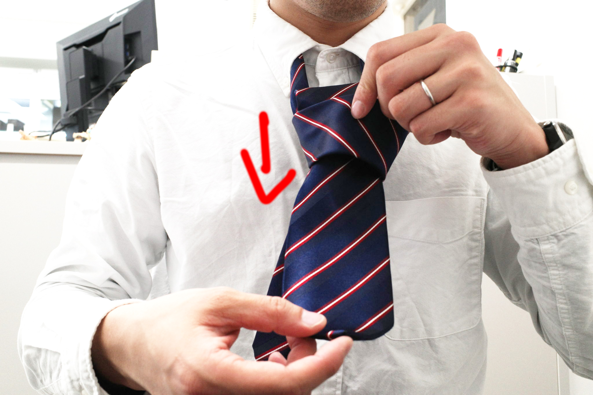 大体ネクタイ結ぶときってこんなんですよね。