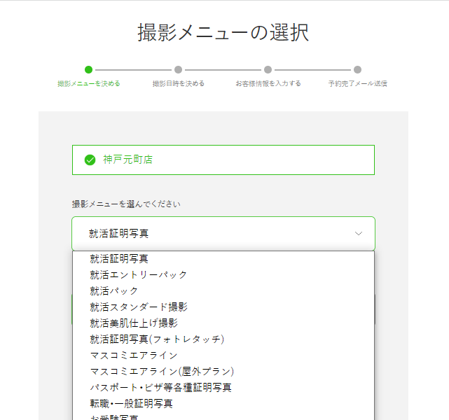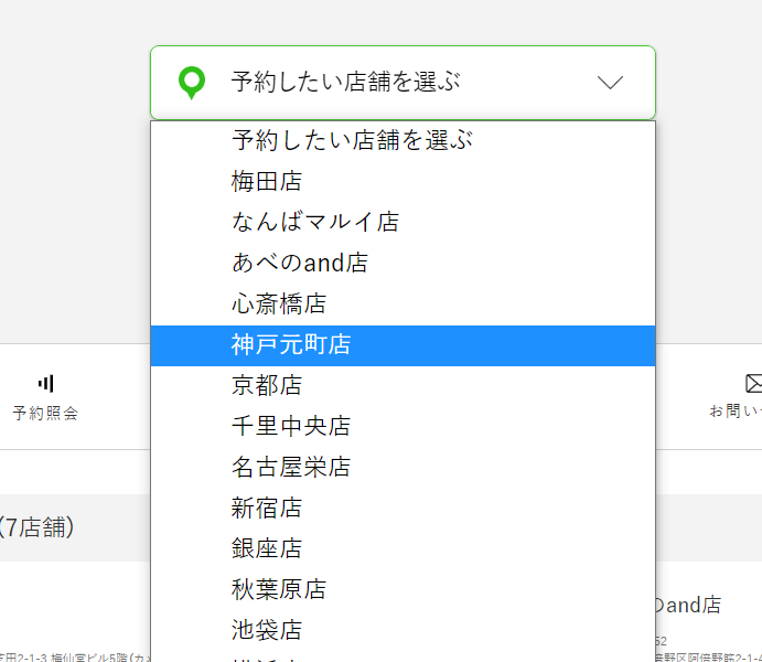 ① 予約専用ページ より当店「神戸元町店」を選択してください。