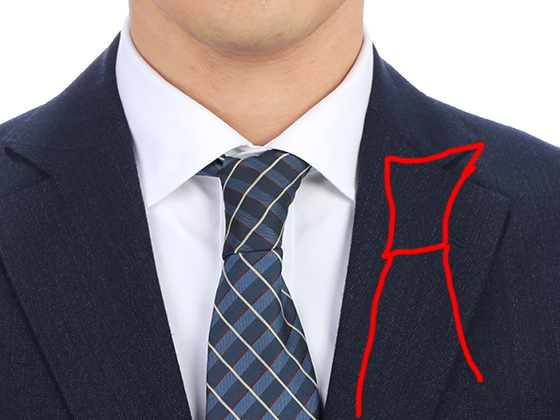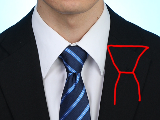 赤いラインはネクタイの形を分かり易く書いたものです。
