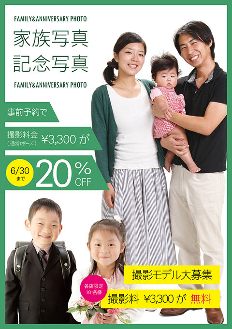 ただいま当店にて「家族撮影」「記念撮影」のご予約をいただくと