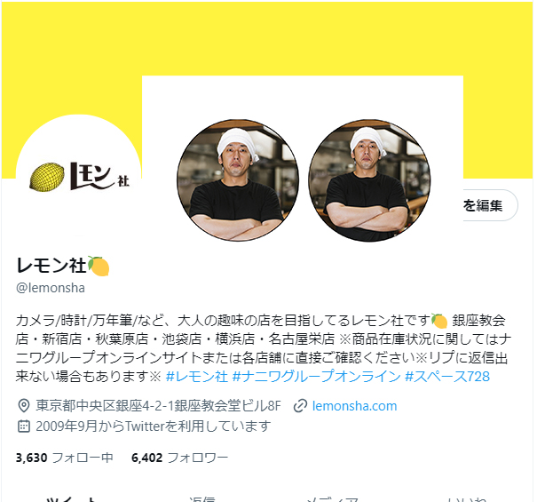 ↑のアイコンに被ってる黄色い部分がヘッダー画像です。超横長。
