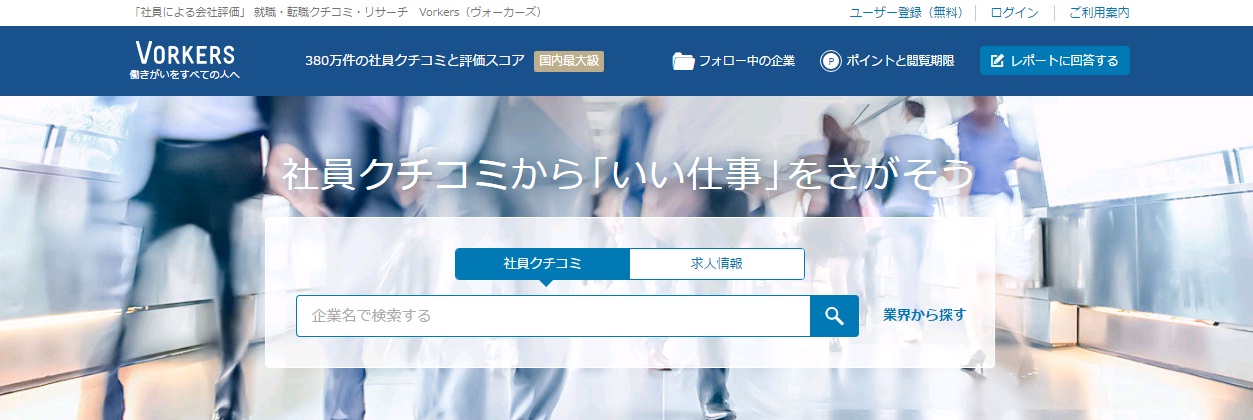 こちらのサイトは、約380万件に上る口コミが掲載されているサイトで、有名企業など幅広いジャンルと実際に勤務している社員の口コミが読める事が魅力です。