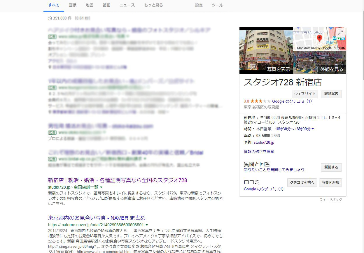 試しに『新宿』『お見合い写真』 で検索してみたところ