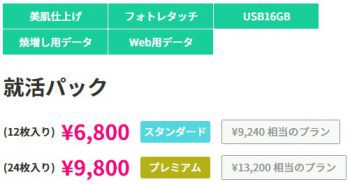 就活フォトレタッチがセットになっている