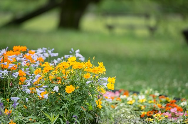 近所の運動公園なんですが、季節の変わり目で綺麗に花々を植え替えされています。